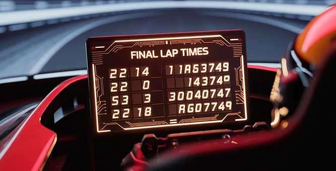 Snelste rondetijden klassement. Real-time scorebord zorgt voor extra competitie en spanning.